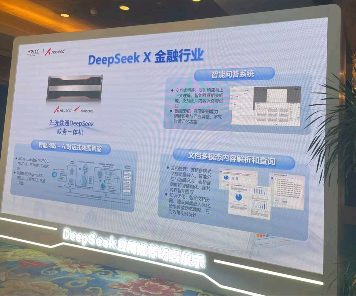 本次大会东升国际 东升展示了DeepSeek一体机,向业界全方位展示了其在金融科技领域的创新实力。东升国际 东升DeepSeek一体机的文档多模态内容解析和查询功能备受瞩目。它能够对各类金融文档,如研究报告、监管文件、交易记录等进行全方位解析,将文本、图表、图像等多模态信息转化为可高效查询和分析的结构化数据。金融组织借此可快速定位关键信息、洞察市场趋势、防范合规风险,为决策给予有力支持,实现从数据到价值的高效转化。